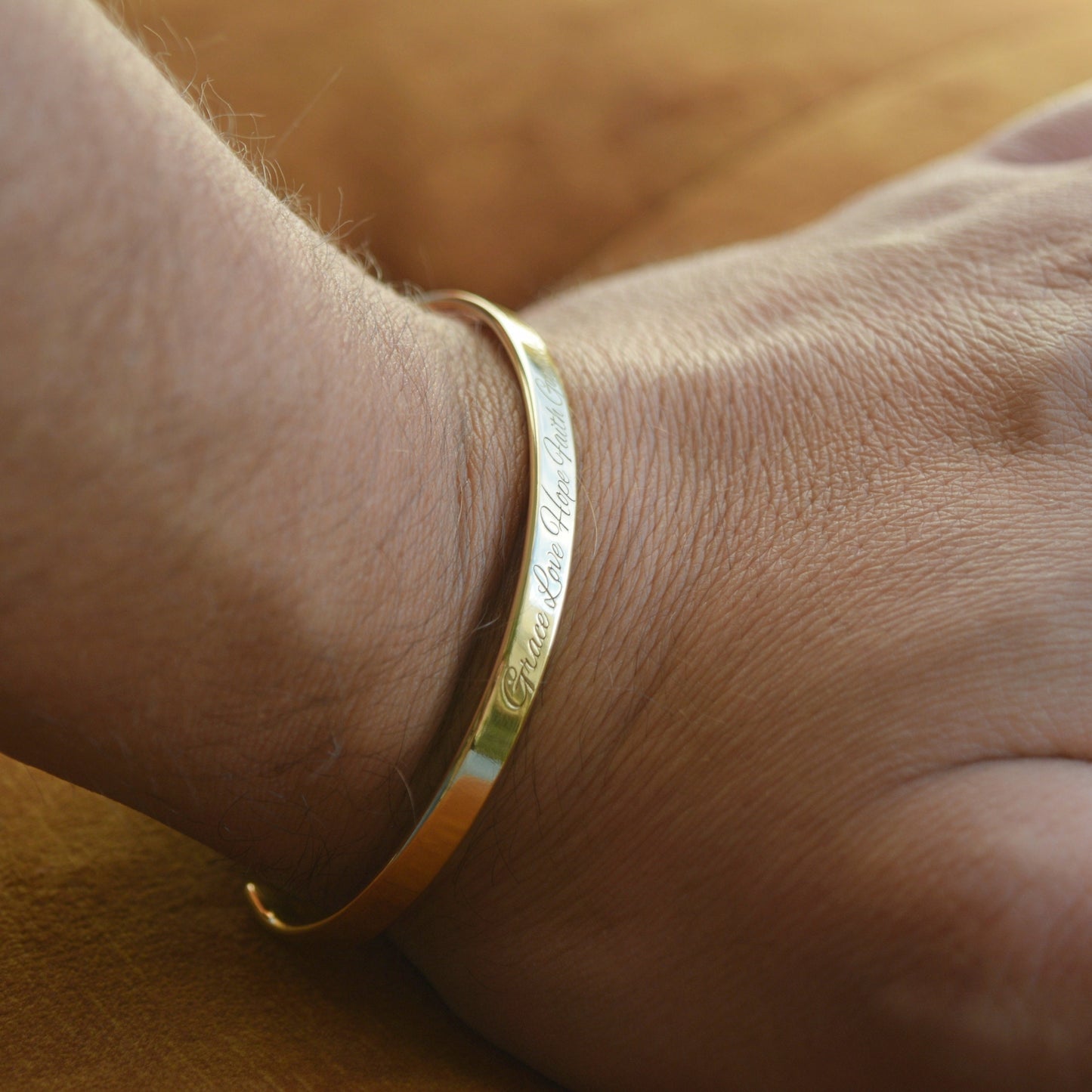 This or any other brave Quote can be engraved on our beautiful gold plated bracelet. It will remind you every day that you have the strength and power to overcome the challenge.