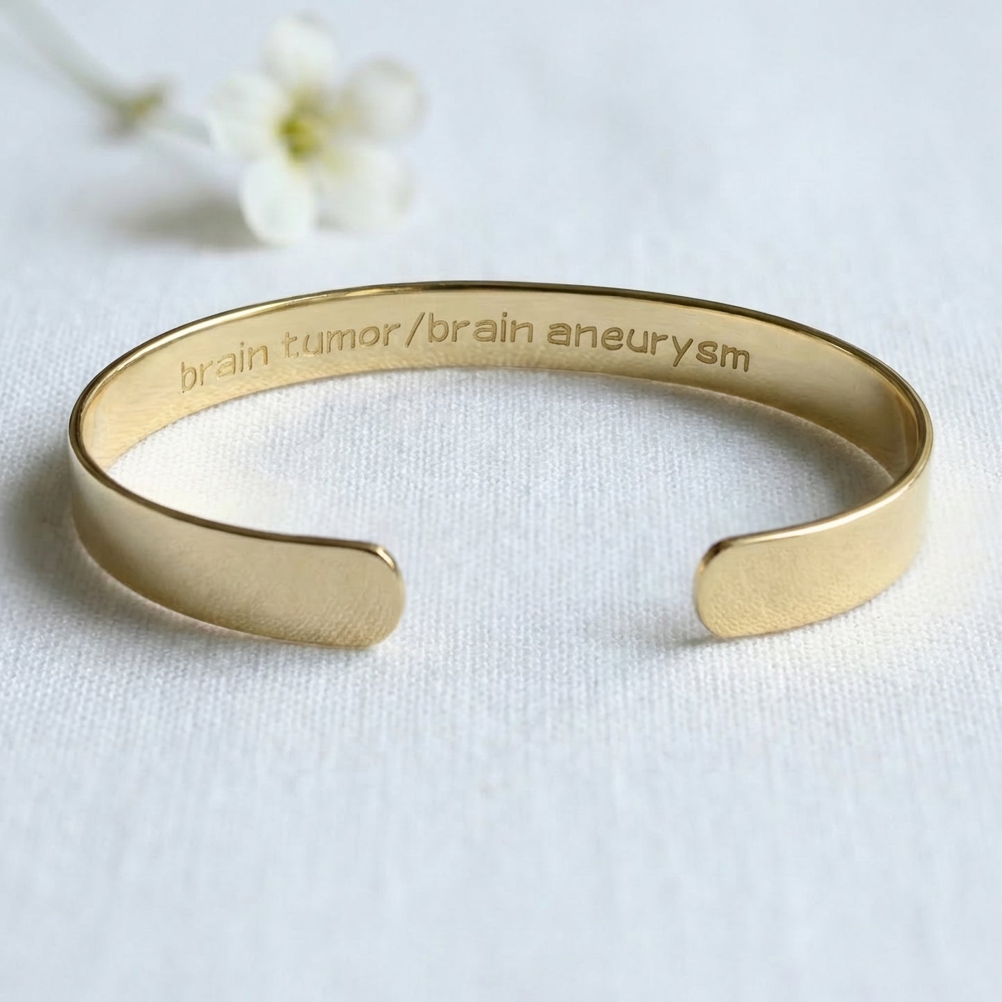 A discreet medical ID cuff bracelet engraved with your essential health information. A stylish everyday piece that can provide critical details when it matters most.