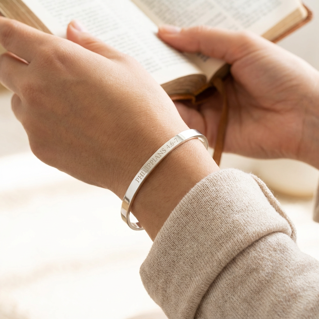 Religious, Christian, Sterling Silver 925 Custom Engraved Bracelet, Faith, Hope, God